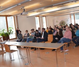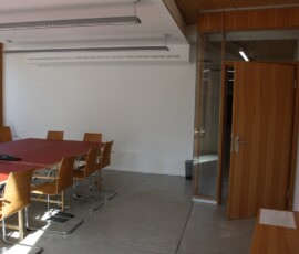 - Großer Konferenz- und Seminarraum für 99 Personen, mit integriertem Beamer und Flipcharts. Der Raum kann mit einer mobilen Trennwand in zwei geteilt werden. Je nach Anzahl der TeilnehmerInnen kann der Raum unterschiedlich eingerichtet werden. Direkt angrenzend eignet sich ein attraktiver lichtdurchfluteter Vorraum (mit kleiner Kitchenette) für Empfänge z.B. nach einer Konferenz oder für Kaffeepausen im Rahmen eines Seminares.